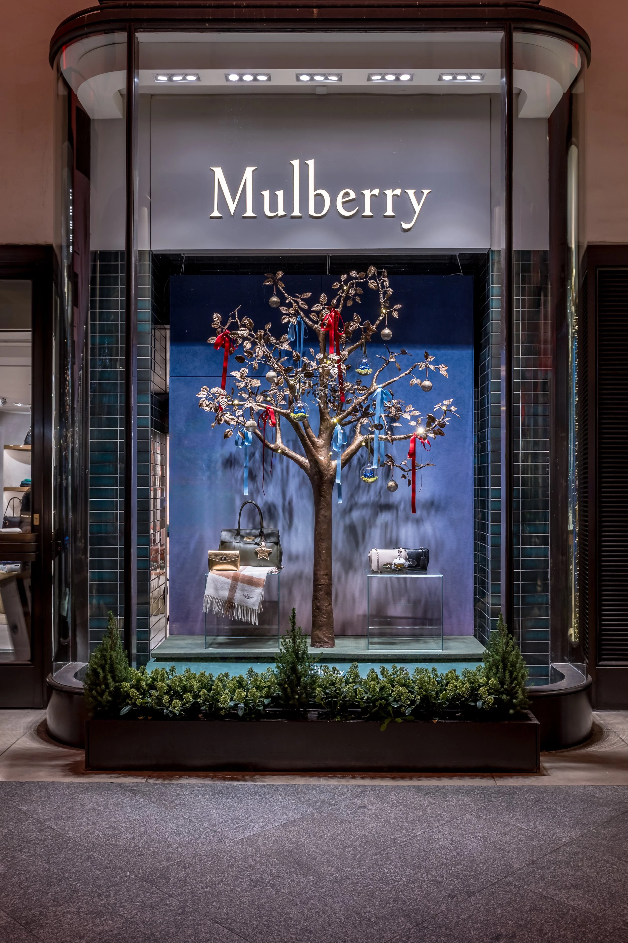 Collective Twenty 5 crafted Mulberry’s international festive window campaign, developing the scheme in tandem with the clients creative vision, through materiality direction and technical development, through to production and installation.